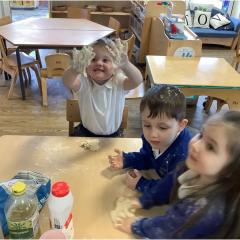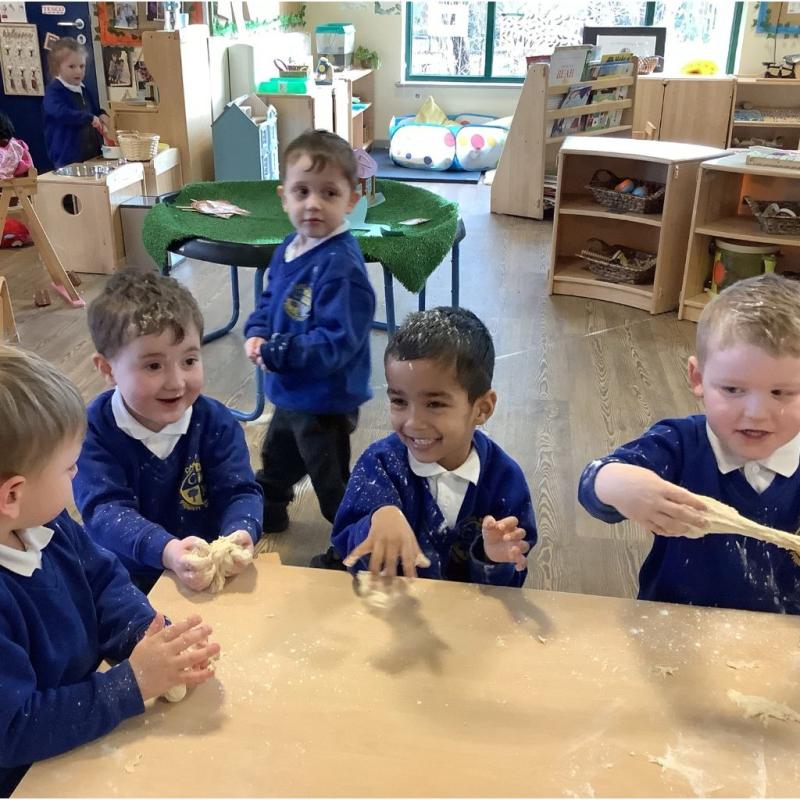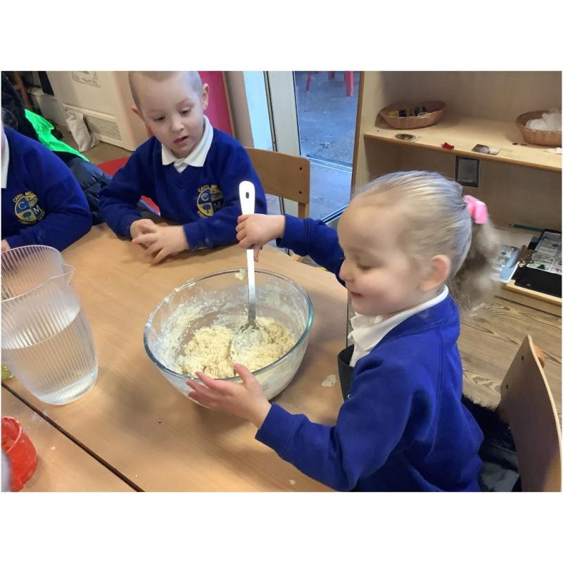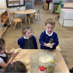 One of the highlights of the week was making our own bread, just like the Little Red Hen! The children loved mixing the ingredients, watching the dough change, and of course tasting the finished bread. It was a fantastic hands-on activity and a great way to talk about where food comes from.