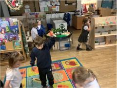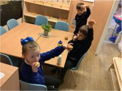 In Maths we have been looking at Mass and Capacity. We have been weighing and measuring objects and have been learning about heavy and light. In the water area we have looked at capacity and have focused on empty, nearly empty, half full, nearly full and full.