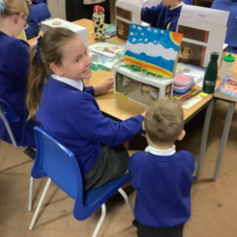 As we ended our topic in DT we got to share our models with Chestnut class- we loved sharing with some of our younger children